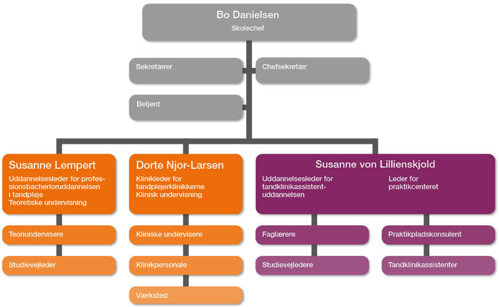 De styrende organer består af et skoleråd og et undervisningsudvalg på tandplejeruddannelsen samt et uddannelsesudvalg på tandklinikassistentuddannelsen.